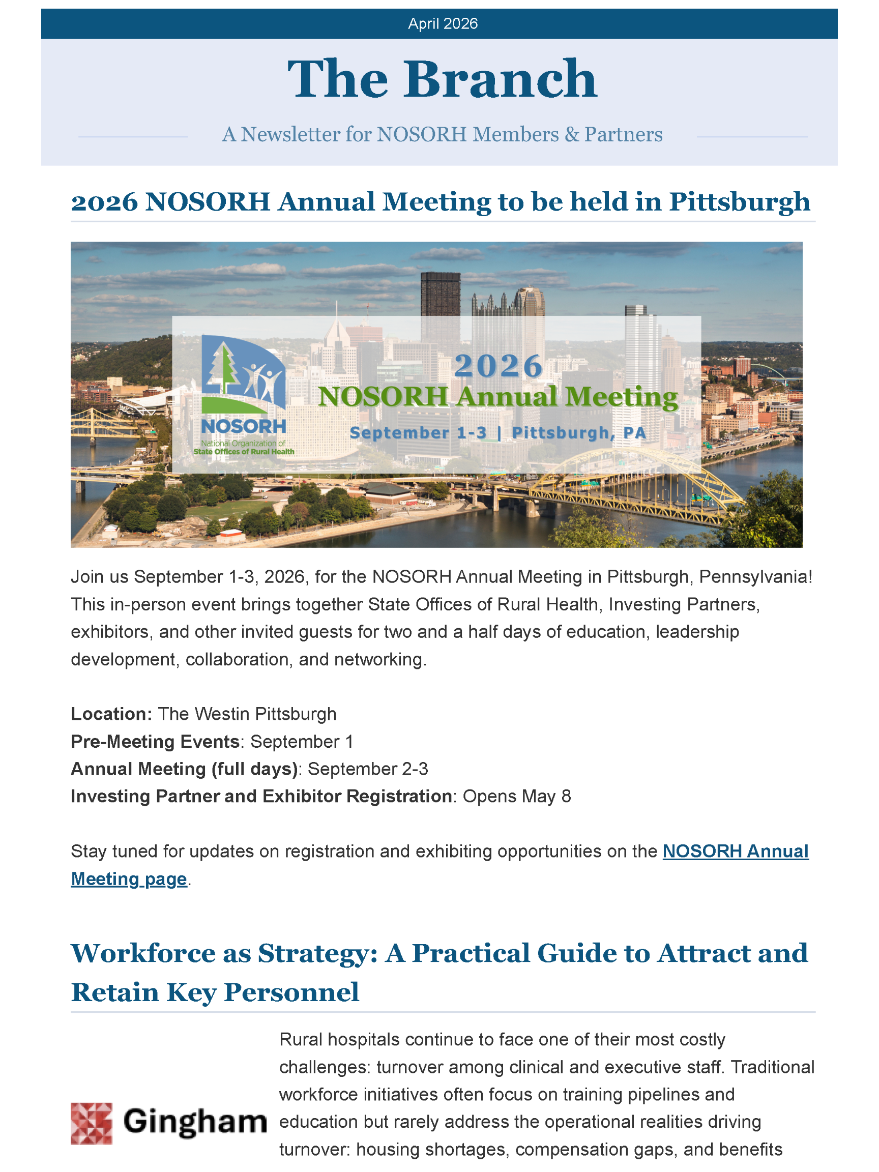 Sign up to receive the NOSORH Branch newsletter – a monthly update featuring rural-focused news, resources, and events for rural health stakeholders nationwide.